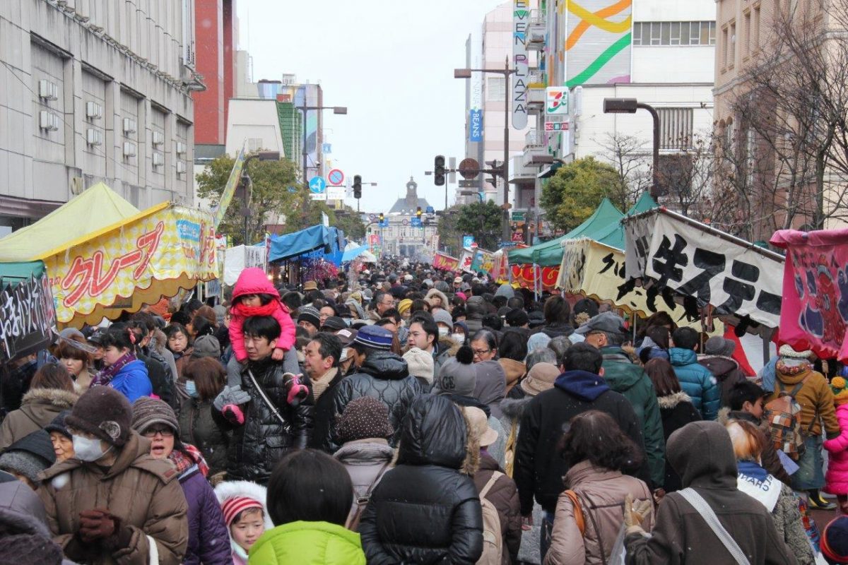 初市では、かぶや白ひげなどの野菜、初飴、木工品、だんご木などの小正月用品、家庭用品など多くの露店が立ち並び、新年の景気を占う恒例行事で市民に愛されている。